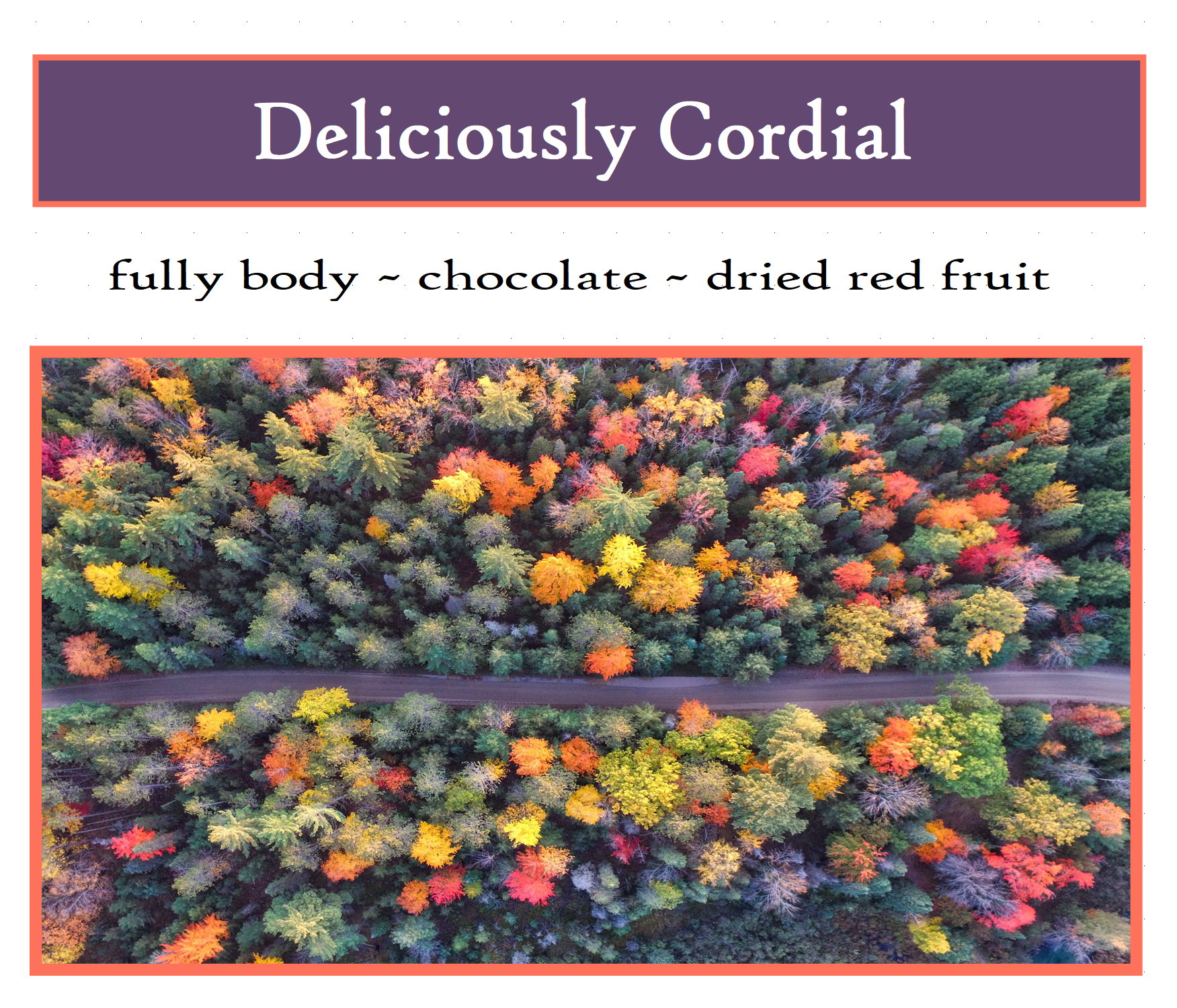 Deliciously Cordial is an exploration in coffee blending. We utilize a blend of two stand alone coffees to bring out the balance of body, chocolate notes and the deep jammy qualities a natrual process coffee imparts.br.and to have a great coffee complementing January 3rd (National Chocolate-Covered Cherry Day!).